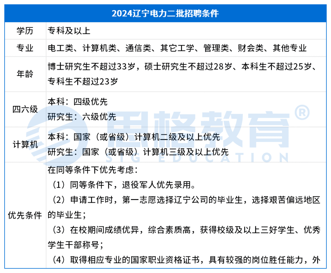 辽宁电力2024年二批除金融类其它七类专业均有招聘,其中,电工类招聘专科及以上毕业生,其它专业招聘本科及以上毕业生。