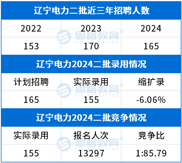 辽宁电力在24年第二批实际录用了155人,近三年来辽宁电力二批招聘人数比较稳定,没有较大波动。