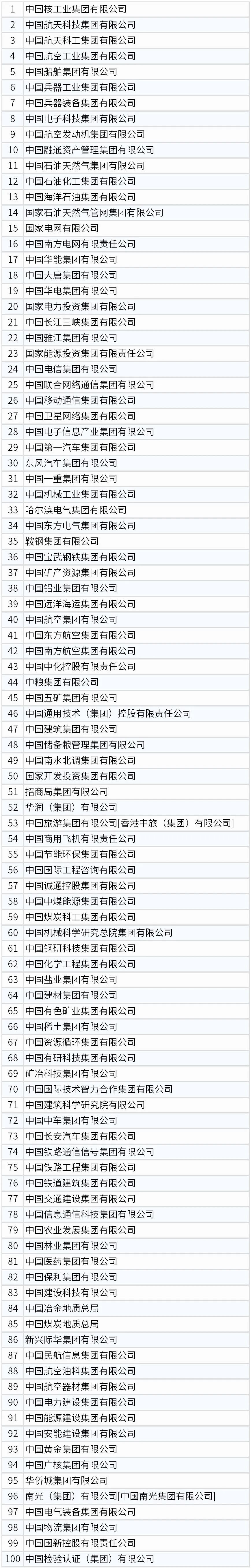 在最新央企名录中: