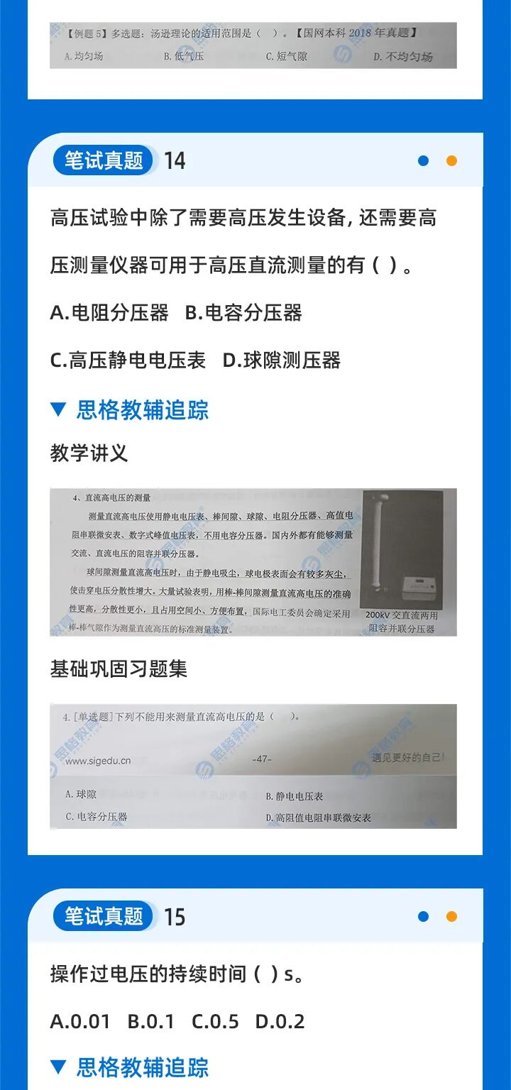 今天,小思就根据同学们回忆的考试题目,整理了高电压部分与教辅内容一致的考题,一起来看看吧~