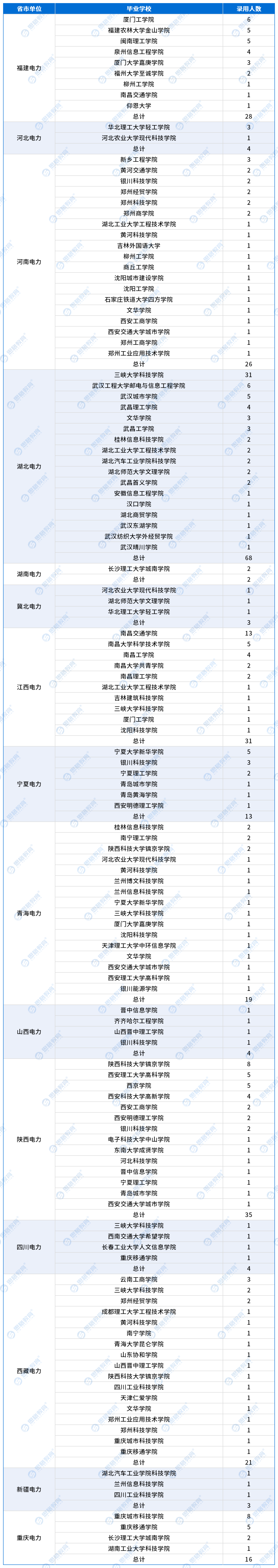 小思整理了农电/供服公司中各单位民办本科院校具体的录用情况,详情如下: